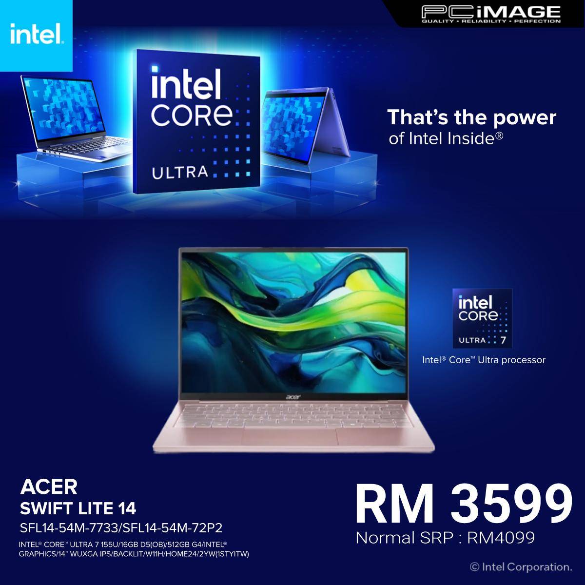 ACER Swift Lite 14 SFL14-54M-72P2/7733 14" Laptop (U7-155U, 16GB LPDDR5, 512GB SSD, Intel Graphics, 14" WUXGA IPS, Win11H, OfficeHNS24+M365 Basic, 2YW)