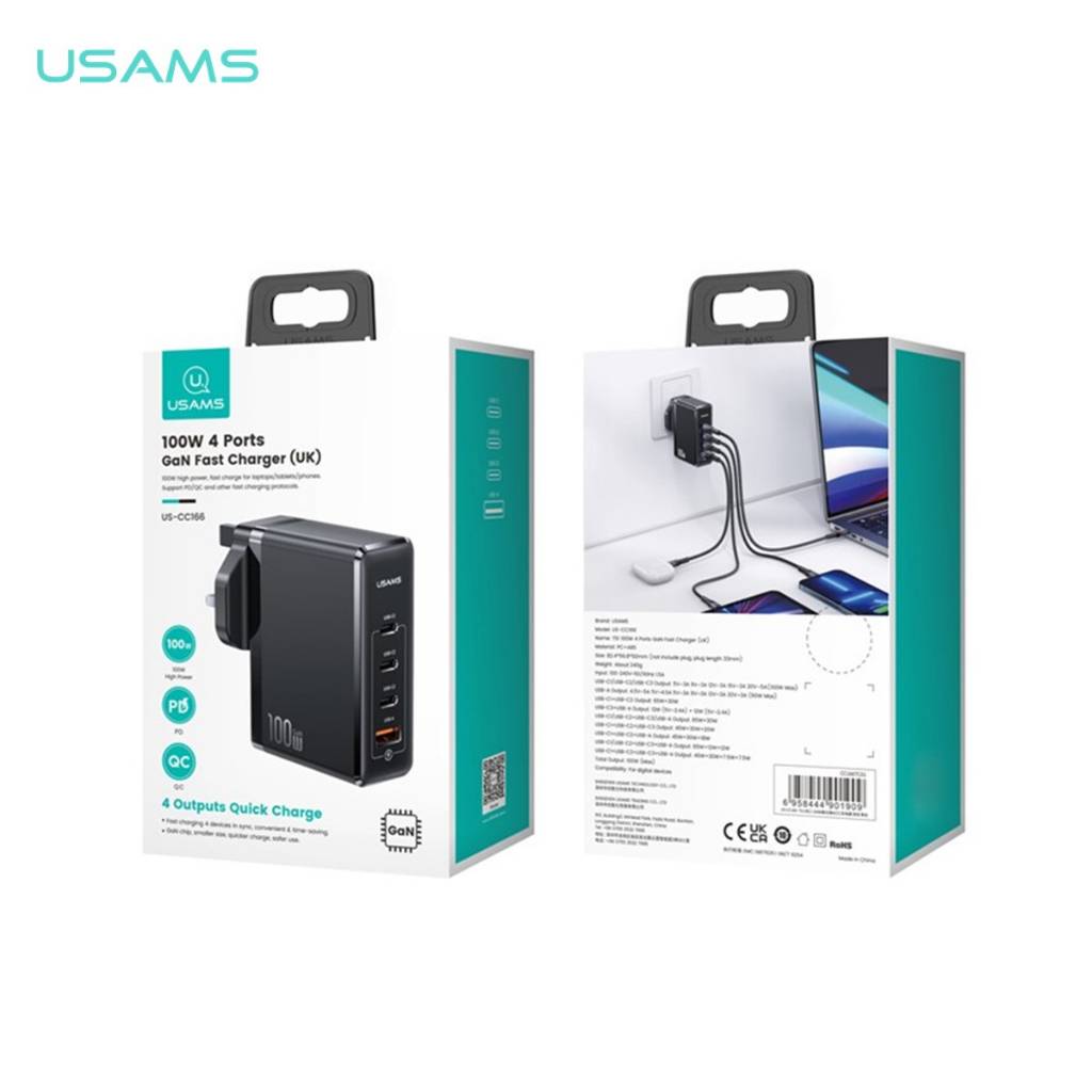 1 x USAMS US-CC166 T51 100W 4 PORTS GAN FAST CHARGER (1QC + 3PD) - BLACK 1YW