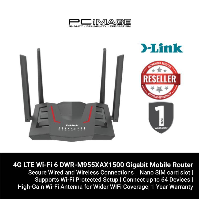 - 1x D-LINK DWR-M955X AX1500 4G LTE ROUTER WITH 1 GIGABIT WAN + 3 GIGABIT LAN