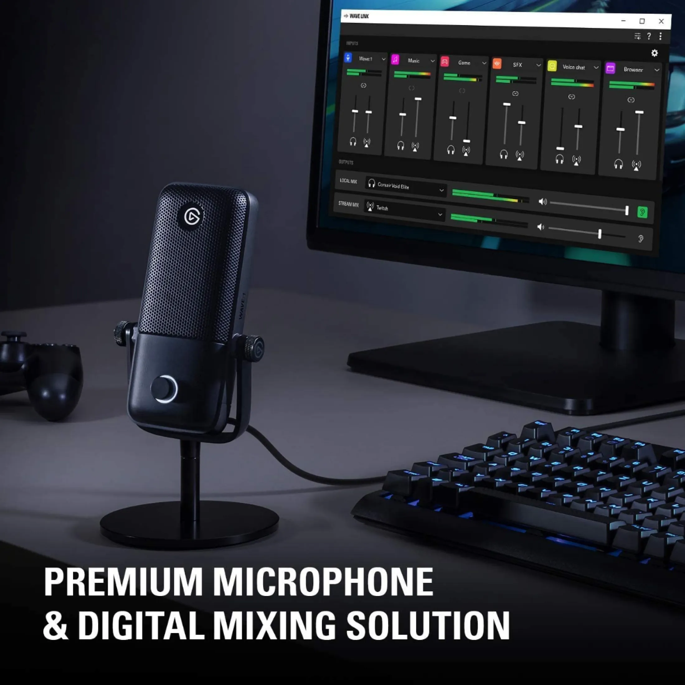 - Use the Wave Link app to control Wave:1 and up to eight other audio sources, plus create two independent mixes