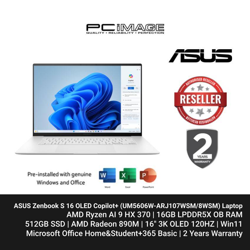 ASUS Zenbook S 16 OLED COPILOT+ (UM5606W-ARJ107WSM/ARJ108WSM) AI 9 HX 370, 32GB LPDDR5X, 1TB SSD, Radeon 890M, 16" 3K OLED 120Hz, Win11, OfficeHNS+365 Basic, 2 Years Warranty